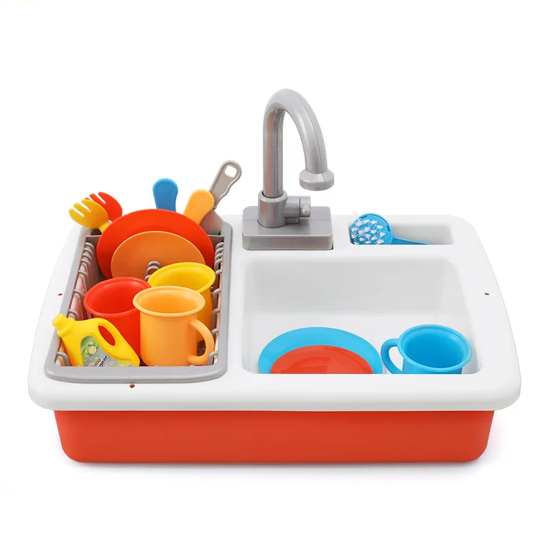 HOT SALE [Top] Children simulation electronic kitchen sink toy Really flowing water faucet Colorful tablewar